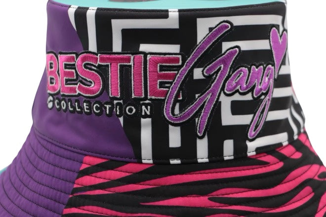 Embroidery luxury 🦓 Ready to turn heads? Meet the ultimate vibe with our Bestie Gang Collection Bucket Hat! 💖 This bold and colorful hat is not just an accessory — it’s a statement. With eye-catching zebra stripes, vibrant purple accents, and playful "Bestie Gang" branding, it’s perfect for anyone who loves to stand out and show off their squad energy.✨